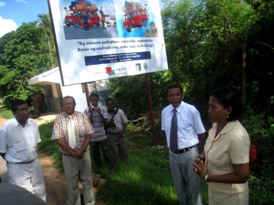 Dans le cadre de la promotion de la lutte contre la corruption sur les axes routiers, l’antenne du Bianco (Bureau indépendant contre la corruption) à Mahajanga a procédé, le mardi 21 février 2012, à la réception et à la remise officielle de 2 panneaux de sensibilisation à l‘intention des usagers des routes. Ce sont des grands supports métalliques implantés près du Poste de Contrôle sur la RN4 visibles à la sortie et à l’entrée de Mahajanga, dans la commune rurale de Belobaka, district de Mahajanga II.