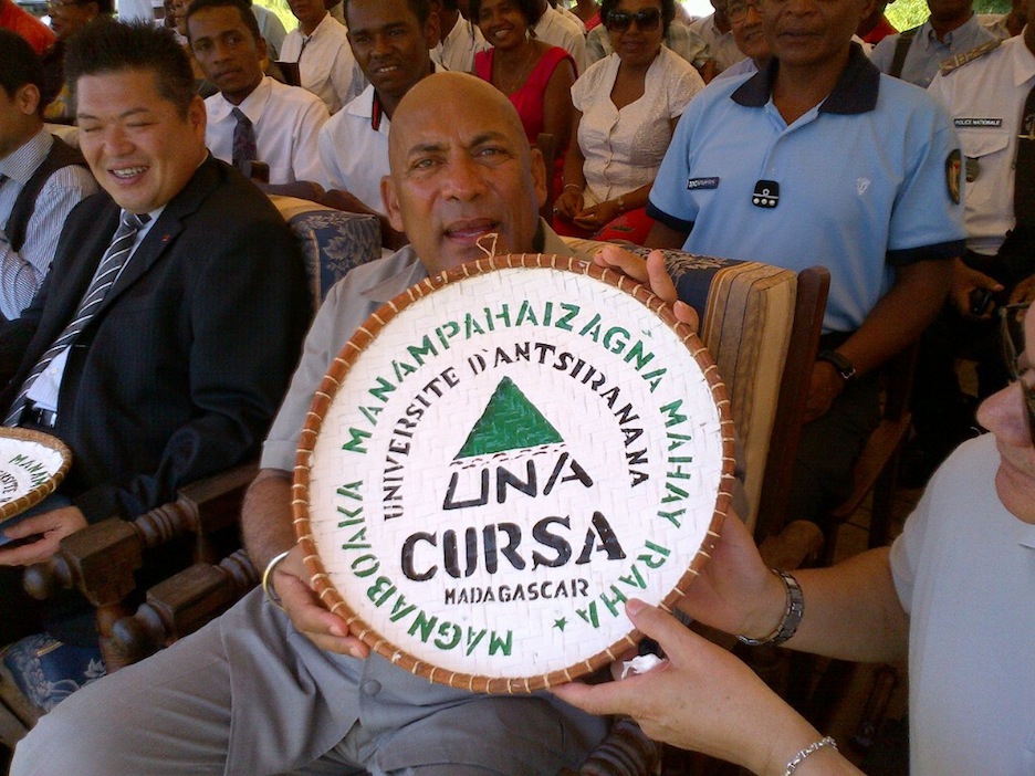 Le Premier ministre Omer Beriziky a honoré de sa présence la remise de dons de dix ordinateurs neufs en faveur du nouveau Centre Universitaire Régional de la SAVA (CURSA) par la société internationale japonaise TAKASAGO, ce jeudi 01er Février 2013 dans la ville d’Antalaha. Takasago est une société créée en 1920 au Japon, elle s’est intéressée au départ à la production des essences de fruits et d’agents de peinture. C’est la première entreprise à avoir utilisé la réaction d’ozonation pour la production de vanilline.