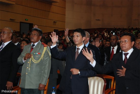 Un culte œcuménique, organisé par la FFKM entrant dans le cadre de la célébration du 52ème anniversaire de l’Indépendance, s’est déroulé cet après-midi du dimanche 17 Juin 2012 au Centre de conférences internationales d’Ivato (CCI). Le président de la Transition, Andry Rajoelina, le président du Conseil Supérieur de la Transition, Dolin Rasolosoa, quelques membres du Gouvernement, ceux du CST et ceux du CT, des hauts responsables civils et militaires, ont honoré de leur présence ce culte œcuménique. Cependant, les sensibilités proches de l’opposition se sont absentées, à l’instar de la mouvance Ravalomanana qui avait fait savoir qu’elle ne prendrait part à aucune cérémonie dans le cadre de la célébration officielle de la fête nationale.