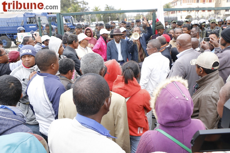 Arrivée au niveau de la place du 13 mai, le virevoltant Pety Rakotoniaina, un des meneurs de HFI et non moins président national du parti Tambatra, a essayé de négocier avec les Forces de l’ordre en déclarant que « la foule qui accompagne le mouvement HFI a les mêmes droits que celle qui a suivi et assisté le mouvement des députés pour le changement et ne doivent en l’occurrence pas être interdit d’entrée au parvis de l’Hôtel de Ville ».