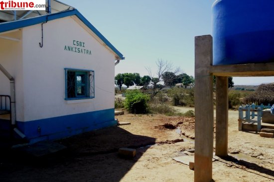 Dans le cadre de sa stratégie de Responsabilité sociale de l’entreprise (RSE), Madagascar Oil, en concertation avec des représentants de l’État, des Régions, des Districts et des collectivités décentralisées, a décidé en avril 2012 de réaliser avec les parties prenantes, trois (3) grands projets sociaux dont la construction d’une école primaire publique à Ankisatra. Ici le temple FJKM sert pour l’instant d’école où les écoliers sont répartis en trois classes. Une jeune enseignante issue du Service civique y dispense les cours. Cette année scolaire, elle envisage de présenter quelques écoliers au CEPE.