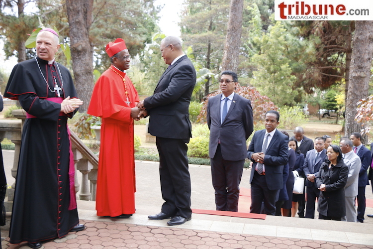 Le président malgache a pour sa part indiqué que « Nous avons longtemps attendu cette nomination, et aujourd’hui nous en sommes heureux. L’Eglise à un rôle important et la nomination du Cardinal Tsarahazana est une bénédiction pour notre pays. Vaincre le mal par le bien, la devise du Cardinal, est un message de repentance et de volonté fort à l’endroit de tout un chacun, peuple et dirigeants. Nous prions afin que vous puissiez mener à bien votre mission apostolique auprès de la population, pour qui nous devons œuvrer pour relever le défi de la pauvreté. Aujourd’hui, ensemble, nous déclarons notre foi pour la renaissance spirituelle du peuple malgache, et pour le développement du pays ».