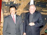 Le président du Conseil pontifical de Justice et Paix, le Cardinal Martino Rafaelino a été reçu par le président Marc Ravalomanana en son palais à Ambohitsorohitra, hier après midi. Le patron de « Justice et Paix » a été accompagné par le Nonce apostolique Mgr. Kasuja. La rencontre a été l’occasion pour le Cardinal Martino Rafaelino d’offrir au président Ravalomanana le « Compendium de la Doctrine Sociale de l’Église catholique » et la médaille d’argent. Sans doute que d’autres ouvrages de « Justice et Paix » lui ont également été offerts.En tout cas, cette visite d’un haut responsable du Saint Siège traduit l’intérêt que les deux parties accordent au dialogue surtout après de présumées brouilles suite à l’affaire Père Urfer et autres retransmissions en direct. .