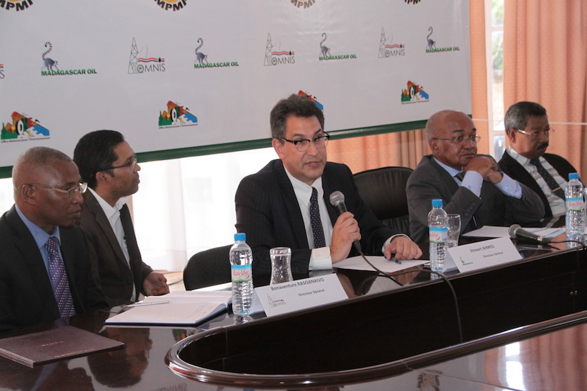 Le décret présidentiel d’octroi de permis d’exploiter a été pris. « C’est un événement capital » avoue le directeur général de l’OMNIS, Bonaventure Rasoanaivo ; « une Première » reconnaît le ministre auprès de la Présidence en charge des Mines et du Pétrole, Joeli Valérien Lalaharisaina. Telles sont les appréciations de l’Administration malgache ce 17 avril 2015 lors de la présentation publique des titres miniers décrochés par Madagascar Oil le 15 avril dernier. Stewart Ahmed, directeur général de Madagascar Oil SA, s’en félicite car c’est le tout premier Plan de Développement dans les hydrocarbures, approuvé à Madagascar ; il a fallu 11 années de labeurs, 138 puits pour maintenant faire de Madagascar un pays producteur de pétrole, modeste il est vrai, mais moderne car respectueux de l’environnement naturel et humain.