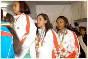« Spectaculaire » ! C’est tout ce qu’on peut résumer de la journée d’hier pour la discipline karaté, les Malgaches ont raflés l’or avec 5 médailles, dans cette conquête et pour le kata par équipe dames, nos amazones ont ouvert la danse, Miora Razafindrakoto, Anjaniriana Ralivelo et Lalaina Ramanantsiariva se sont imposées dans leurs démonstrations. D’après Miora la championne en arts martiaux, cette victoire à l’arraché résulte surtout de plusieurs facteurs : « nous avons l’habitude de nous retrouver en compétition et d’affronter nombres d’adversaires de taille avec différentes techniques, aussi nous avons un bon coach qui depuis la préparation nous a imposé un vrai entraînement de titan ». L’équipe masculine malgache, elle aussi, est entrée dans la saga de la victoire en rapportant les médailles d’or. Pour le kata individuel, Miora Razafindrakoto a battu à plate-couture son adversaire et se pare de l’or, Rabearison Isambilo plaqué sur la touche par son adversaire le Réunionais Caprin Joël, quant à lui, ne pouvait que se résigner de la deuxième place avec l’argent au cou. En kumite, l’équipe féminine malgache regroupant Marianne, Judith et Rahanitriniaina Arlette s’est encore retrouvée sur le haut de la scène en remportant le joyau tant convoité, « l’or ». Rasolonjatovo Titan, Fanoniriana Herindrainy, Razanamahefa Nicholas, Randriambelo Victor et Ratefinanahary Auguste composant l’équipe masculine, ont renforcé le triomphe dans cette ruée vers l’or. En tout cas, le début de la compétition a été très fructueux et s’annonce prometteur, on ose espérer que la majorité des médailles illumineront les cous de nos athlètes.