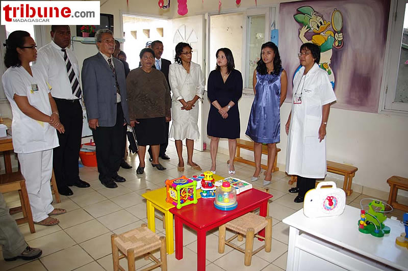 Mmes Mialy Rajoelina et Sylvie Roindefo ont visité l’hôpital des enfants à Tsaralalàna et ont effectué une remise de dons à cet établissement.