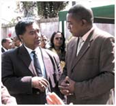 Désiré Razafindrazaka en pleine conversation avec le Secrétaire d’état chargé de la Culture et des Loisirs.