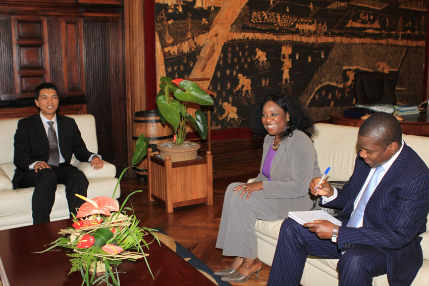 Le président de la Haute autorité de la transition (HAT), Andry Rajoelina, a reçu en audience, cet après-midi du mercredi 28 Décembre 2011 au palais d’État d’Ambohitsorohitra, la coordonnatrice résidente du Système des Nations Unies, en même temps représentante résidente du PNUD, Fatma Samoura ainsi que Maître Flavien Misoni Mbayahe, avocat et expert électoral. L’entretien s’est tenu à huis clos et a duré 1h30.