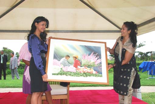 Les épouses des ministres et dignitaires de la Haute autorité de transition (HAT) et les femmes ministres se sont rendues au palais d’État d’Ambohitsorohitra pour présenter leurs vœux de Bonne année à l‘épouse du président de la HAT, Mialy Razakandisa Rajoelina. Ce fut l’occasion de réjouissances et de séances photos sans oublier les discours d’usage en de pareilles circonstances.