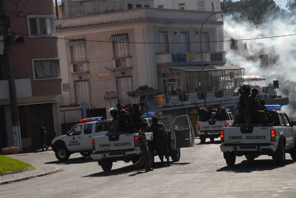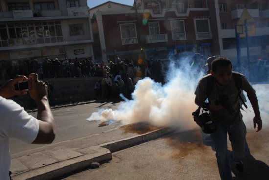 Presque simultanément, les jets de grenades lacrymogènes commençaient. Les forces de l’ordre tentaient de disperser la foule ; celle-ci reculait pour reformer de petits groupes un peu plus loin. Les véhicules pick-ups des forces de l’ordre poursuivaient les manifestants perçus comme étant plus agressifs.
