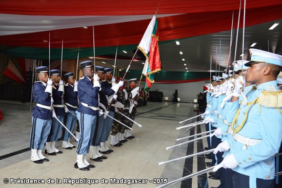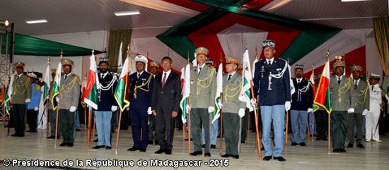 Protection de nos 5000 km de côtes et lutte contre la piraterie en haute mer ; lutte contre le marché noir et le terrorisme ; garant de la stabilité, de l’État de droit et de la démocratie ; protection des personnes et de leurs biens… tels ont été les principaux messages que le président de la République, chef suprême des Armées, a adressé aux généraux promus pour compte de l’année 2014 lors de la cérémonie de remise de drapeaux qui s’est tenue au Palais d’Iavoloha ce 23 janvier 2015 en présence de la grande famille du « Foloalindahy malagasy ».