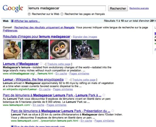 Comparez le nombre de réponses que vous donne votre moteur de recherche Internet favori sur « pingouins madagascar » et « lémuriens madagascar ». Le nombre de réponses pour l’un dépasse de plus de deux fois celui des réponses pour l’autre.