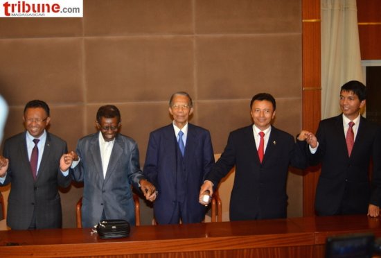 – La réconciliation de la classe politique et les acteurs des deux crises, 2002 et 2009. Il me semble que les cinq hommes qu’on voit sur la photo à Ivato sont bel et bien les principaux acteurs politiques des crises de 2002-2009.