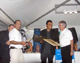 Luc Ratsimbazafy fier de sa victoire reçoit son prix de la main des responsables de la BNI.
