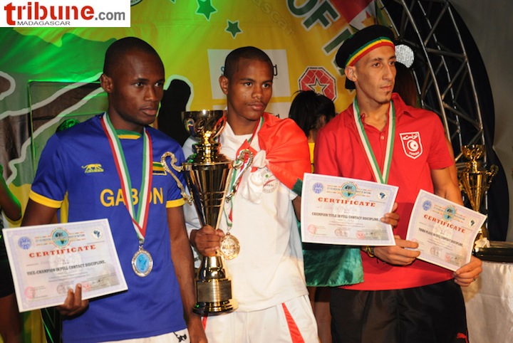 Julien Rafaralahisoa dans la catégorie homme moins de 60kg a été meilleur que le tenant du titre, le gabonais Ikapi Nzamba à l’issue de la finale qui a opposé les deux combattants en full contact samedi 29 septembre dernier. Deux autres médailles d’or ont été récoltées par l’équipe malgache dans la même journée ; elles ont été gagnées par Jean Christian et Fenonavalona.