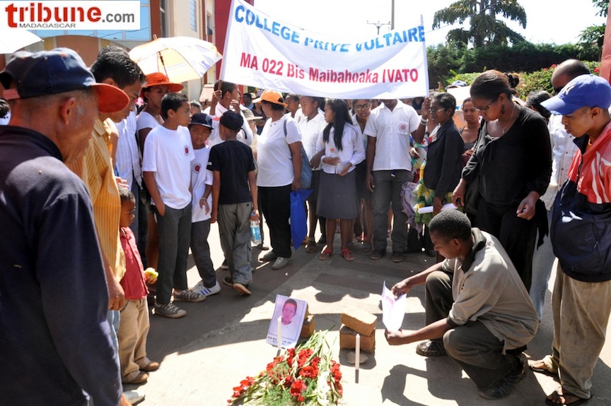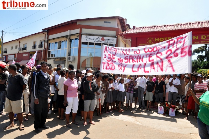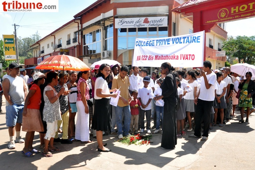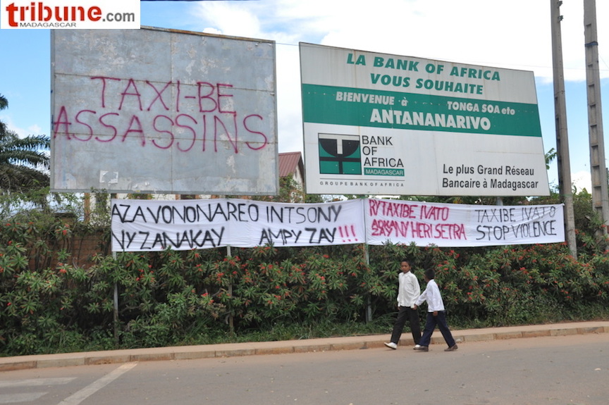 Exaspérés par les comportements des chauffards des taxibe qui desservent la ligne Ivato-Antananarivo, les parents d’élèves, les riverains et les autorités municipales qui sont mitoyennes, ont manifesté ce lundi 17 mars à Antanetibe Ivato. Ils ont brandi des banderoles et déposé des gerbes à l’endroit où deux jeunes élèves ont été fauchés vendredi 14 mars par un taxibe. Las des vains appels à l’endroit des responsables (dirigeants de coopératives, forces de l’ordre et agents de circulation), à ce qu’ils sanctionnent sévèrement les taxibe qui roulent à tombeau ouvert et font la course sur cet axe, les populations riveraines ont exprimé leur condamnation unanime et leur ras-le-bol. Un autre rassemblement est prévu pour samedi prochain auquel participeront tous les établissements scolaires de cette partie nord de la capitale.