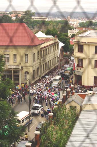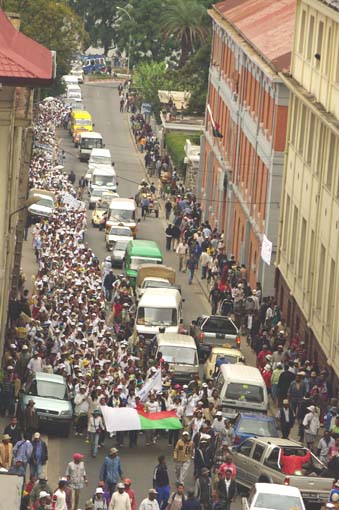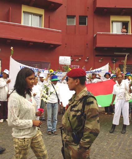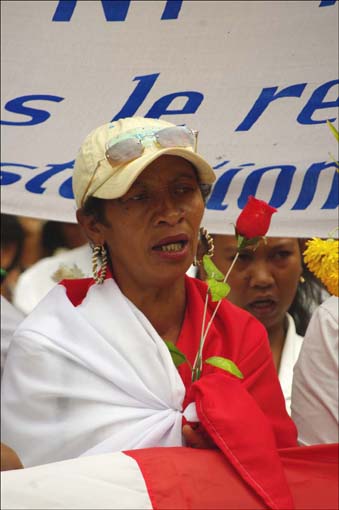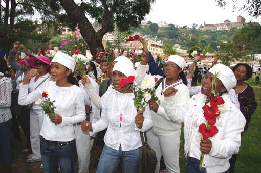 Vêtues de blanc et munies chacune d’une tige de fleur, les femmes « légalistes » ont fait une marche depuis le jardin d’Antanimbarinandriana pour joindre le palais de la Haute Cour Constitutionnelle.