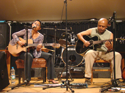 Immédiatement, la magie de la complémentarité entre l’homme et la femme a opéré. Là, on pouvait parler sans hésitation d’une véritable fusion du Ying et du Yang des orientaux. La présence de Solo a aidé Noro à manifester ses talents poétiques à côté d’une virtuosité inégalable dont témoigne le couple sur leurs guitares. Quand Solo improvisait sur sa « takamine », on sentait que c’est sa compagne qui en est l’inspiratrice (la muse) avec ses accords bien dosés. Cette nuit-là, le Cgm vivait au rythme des senteurs brésiliennes avec du Bossa-Nova sorti tout droit de Rio, où une Noro très inspirée malgachisait sans crainte le « Girl from Ipanema ». La dernière partie du show fût la plus intéressante car leurs copains musiciens s’étaient résolus à les accompagner. Le support rythmique de Haja Andrianary à la basse et de Lova à la batterie a donné une teinte nettement colorée au tempo. De plus, on notait un Solo particulièrement sémillant au saxo alto ou aux cordes, sans oublier l’autre Haja, Rakotonimanga, qui soutenait la chanteuse au clavier.