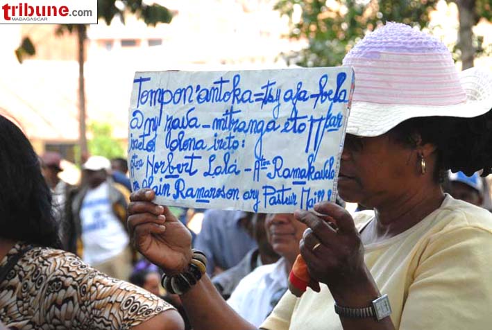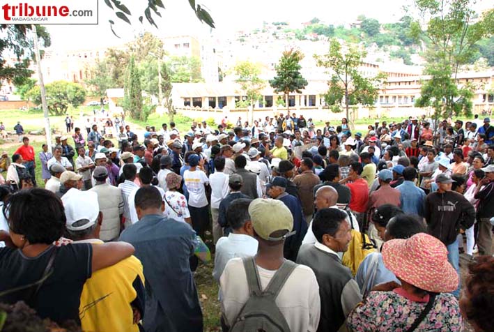 Reprise timide du meeting des partisans des 3 mouvances ce lundi 1er février 2010. On se souvient que faute de pouvoir s’installer dans le jardin situé en face du palais du Sénat, les partisans des 3 mouvances s’étaient déplacés du côté de Mahamasina ; mais suite aux échauffourées du jeudi 21 dernier, les jardins qui se trouvent devant le stade ont été barricadés pour cause de réhabilitation. Aussi ce lundi, ces partisans des 3 mouvances s’étaient donnés rendez-vous à l’ex- Square Poincaré ou Antanimbarin’Andriana. Le meeting n’a pas réuni grand monde mais ceux qui étaient présents ont pu s’exprimer, malgré la présence des forces de l’ordre. Les orateurs et animateurs du meeting ont appelé à un autre rassemblement sur la même place ce mardi 2 février à partir de 13 heures.