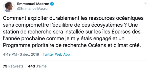 Emmanuel Macron s’intéresse visiblement de près aux Iles éparses. Alors que les autorités malgaches préparent une concertation nationale du 9 au 11 décembre prochain au CCI Ivato et que la première réunion de la commission mixte franco-malgache, n’a pas abouti à grand-chose, le président français a publié sur les réseaux sociaux le 3 décembre dernier la nouvelle perspective française sur ces îles. « Une station de recherche sera installée sur les îles Éparses dès l’année prochaine comme je m’y étais engagé et un Programme prioritaire de recherche Océans et climat créé. », annonce-t-il sur son compte twitter. Une déclaration considérée par les observateurs politiques comme une réponse cinglante de la France aux tentatives malgaches de vouloir reprendre ces îles.