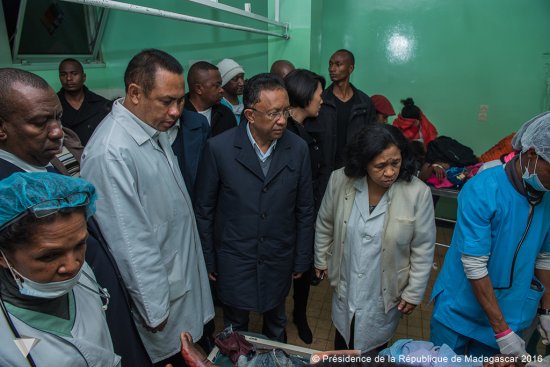Les services communications de la Présidence de la République informent dans la soirée qu’ « un engin explosif, qui reste à identifier, a explosé dans la foule venue assister au concert du 26 juin au Stade de Mahamasina, en début de soirée. On déplore deux morts et plusieurs dizaines de blessés. Dès qu’il a appris ce drame, le président de la République s’est rendu au CHU Ravoahangy Andrianavalona, avec son épouse, ainsi que le Premier ministre et des membres du gouvernement. Hery Rajaonarimampianina y a présenté ses condoléances aux familles qui ont perdu des proches, et prodigué des mots de réconfort aux blessés. Il a fermement condamné cet attentat odieux. Il a condamné ceux qui, pour des raisons politiques, utilisent la violence aveugle en sacrifiant la population dans des actes aussi abjects ».