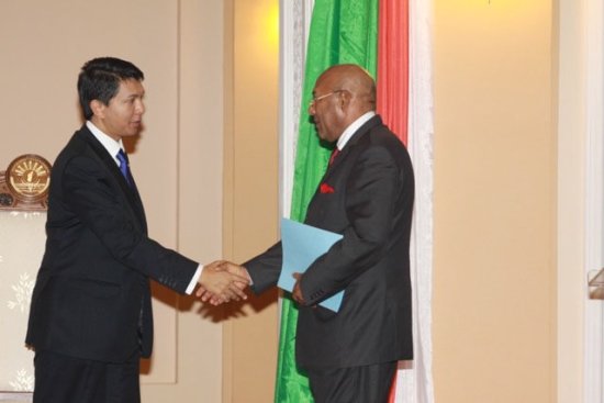 Notre président andry Rajolena est un grand homme d’état.Hier, il l’a encore prouvé aux yeux du peuple malgache, aux yeux de la communauté internationale qu’il veut que Madagascar se relève de l’année de dictature durant 7 ans.Peuple malgache oui nous avons un grand président.