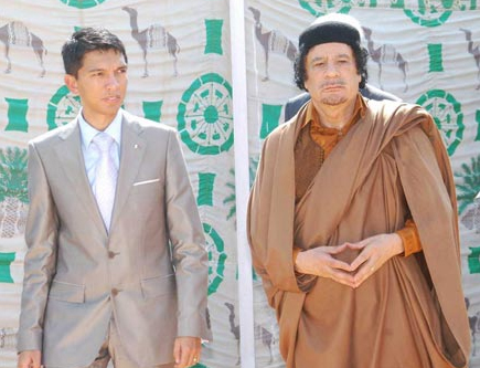 Khadafi avait été le seul chef d’Etat à s’empresser de faire venir chez lui le jeune putschiste Rajoelina en 2009,