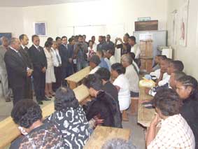 Mardi dernier à l’Hôpital Joseph Ravohangy Andrianavalona Anosy, une délégation dirigée par le Premier ministre Charles Rabemananjara a présenté ses condoléances aux familles des victimes de l’accident survenu à Ouest Ambohijanahary, lundi dernier. Cette délégation est venue présenter, aux familles des victimes de l’effondrement d’un mur de ses voisins, les mots de réconfort de l’Etat, et surtout ceux du Président de la République Marc Ravalomanana. Cette délégation a été composée du ministre de la réforme foncière et de l’aménagement du territoire, Marius Ratolojanahary, du ministre de la santé, et du vice-ministre de la santé, Marie Perline.