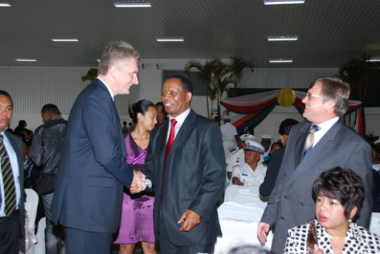 Un cérémonial de remise de drapeau aux généraux promus et nommés au titre de l’année 2010 s’est déroulé ce mardi 18 janvier 2010 au palais d’État d’Iavoloha. Contrairement à ce qui s’était tenu en 2009 pour les nouveaux généraux promus et nommés au titre de cette année là, il y a eu une vraie remise de drapeau avec la cérémonie militaire adéquate. Mais de plus, le cérémonie a été rehaussée par la présence des membres des corps diplomatiques, dont l’ambassadeur de France, Jean-Marc Châtaigner, l’ambassadeur du Sénégal et celui de la Russie.