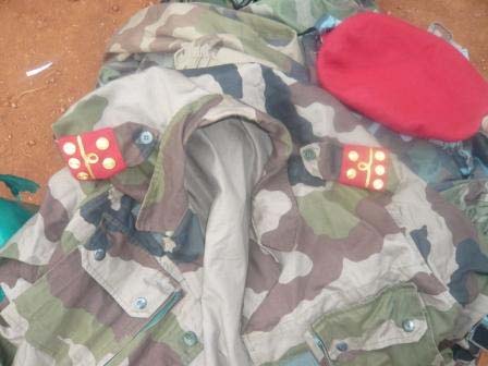 3/ - « Tenue de combat » maromaro tao anaty sakaosy ary nisy galona Kolonely miaramila mbola vaovao sy beret rouge iray.