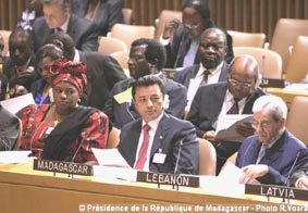 « L’Objectif du Millénaire pour le Développement (OMD) risque de ne pas être atteint », a interpellé hier le président de la République de Madagascar, Marc Ravalomanana, dans son discours à la tribune des Nations Unies à New York. Le chef de l’Etat attribue ce possible échec à l’attitude des pays riches, qu’il qualifie de Leaders du monde. « Ces Leaders du monde ne tiennent pas leurs promesses », dit-il. « Actuellement, la situation mondiale est devenue complexe », selon le locataire d’Ambohitsirohitra. Il y a une multitude de crises, notamment les crises alimentaires et les crises en matière de sécurité. Ces crises portent atteinte à la réalisation de l’OMD.