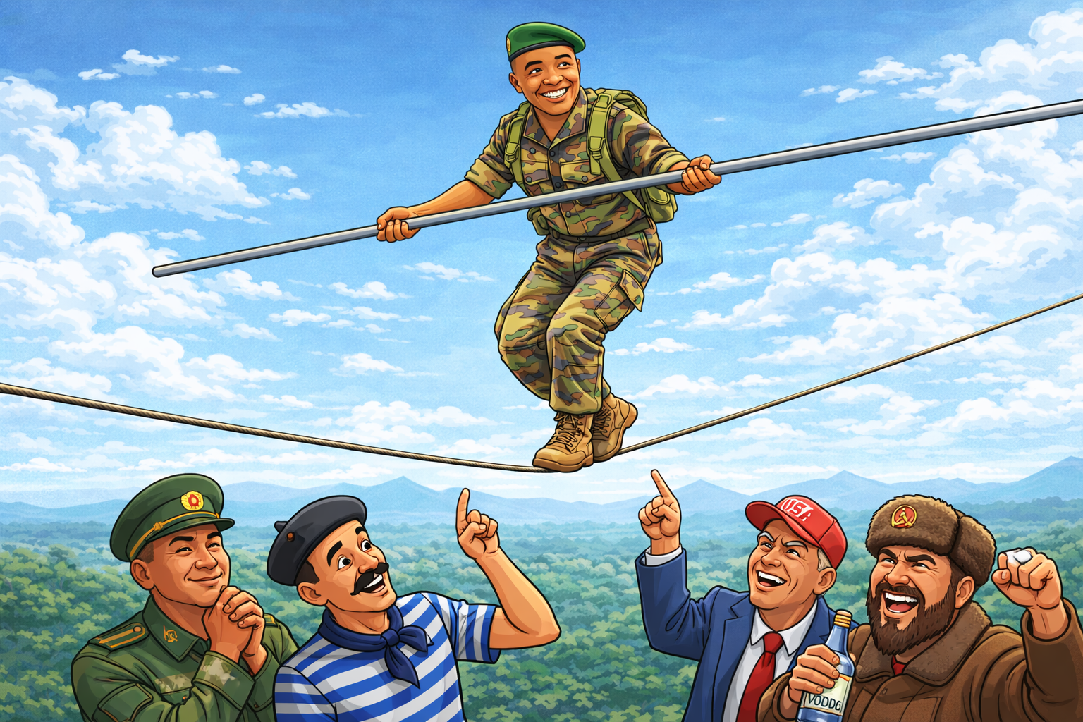 De toutes manières, les pays occidentaux sont dans une situation qui ne leur laisse pas beaucoup le choix. Faire la fine bouche au nom de sacro-saints principes démocratiques pour l’accès au pouvoir, c’est laisser un boulevard aux intérêts pro-russes. Un faisceau convergent de phénomènes depuis octobre 2025 a mis en exergue la montée en puissance des clans proches de Moscou au sein du pouvoir actuel : audiences accordées par le Président de la refondation de la République de Madagascar, voyages de hiérarques Malgaches à Moscou ou de dignitaires russes à Antananarivo, les dons d’armes et de mise à disposition d’instructeurs), ainsi que la présence de drapeaux russes lors des derniers jours de manifestations de la Gen Z.