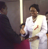 La visite de Madame Mwanawasa a été assistée par la première dame de la Commune Urbaine d’Antananarivo, l’adjoint au maire, le vice-ministre de la Santé, la femme du ministre des Affaires Etrangères, le Secrétaire Exécutif du Comité national de la lutte contre le Sida.
