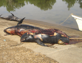 Le lendemain jeudi 4 juin, les dauphins étaient plus d’une centaine et 27 étaient déjà morts. 6 cadavres dans le port d’Antsohihy, dont deux bébés….