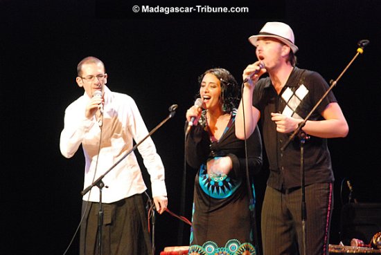 David Amar très détendu (basse vocale, saxophones, chant, flûte traversière, derbouka), Yona Yacoub peu loquace mais coquine (saxophones, chant, caisse claire) et Fred Luzignant en très bonne forme (trombone, chant, udu). Ils ont été chaudement accueillis par des spectateurs qui se sont particulièrement déplacés pour découvrir leur talent hors du commun. Pour le groupe, le concert était gagné d’avance. Autant d’assistance les a certainement fait oublier qu’ils sont sur une scène inhabituelle.