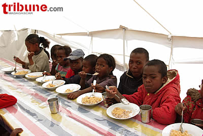 Les cantines populaires sont fonctionnelles depuis ce 13 juillet 2009. Elles sont installées dans les bas quartiers de la capitale. L’initiative revient à la Croix Rouge malgache qui l’a concoctée depuis plusieurs mois. Aujourd’hui ces cantines populaires, dénommées « Resto du coeur » fonctionnent avec l’appui de l’Ambassade de France. Contribue aussi à leur mise en œuvre, la Savonnerie Tropicale, dont le Président directeur général est le père de l’acutelle ministre de la Population de la Haute Autorité de Transition, Nadine Ramaroson.