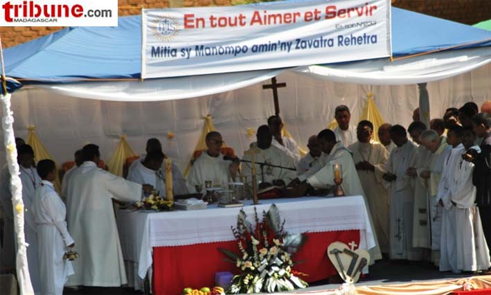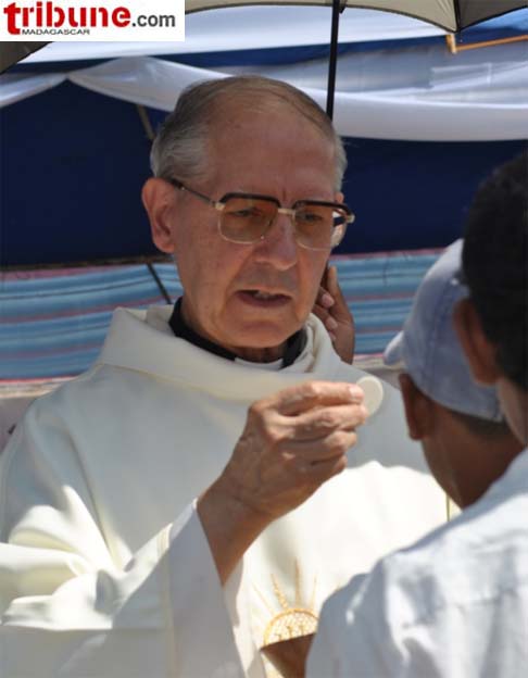 Le Père général des Jésuites, communément appelé le « Pape Noir » en raison de sa soutane noire, le Père Adolfo Nicolas, a célébré une messe dans l’enceinte du Collège Saint Michel Amparibe dimanche 8 mai dernier. C’était le summum de son séjour en terre malgache. Le général des Jésuites est arrivé lundi 2 mai et quittera le pays demain mardi 11 mai. L’objet de cette visite est de rendre hommage à ses condisciples, de les conforter dans leur foi et mission et de les encourager avec leurs partenaires dans leurs activités. Le message qu’il a transmis est le suivant : poursuivre la mission d’évangélisation sans frontières ; il faut aller en profondeur, surtout en ces temps de crise socio-économique ; il faut aussi oser aller aux frontières, idéologique, spirituelle, des classes, de la classe sociale et des mentalités. Enfin et non des moindres, il faut de la créativité dans la foi.