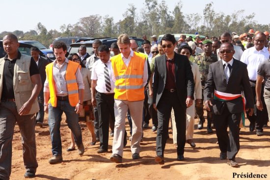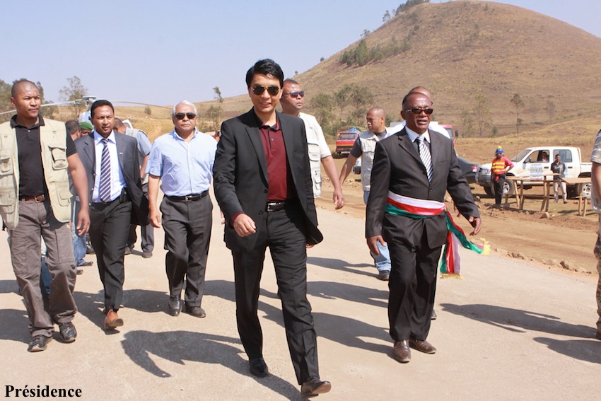 À peine arrivé, le président de la Transition a procédé à la visite des travaux de réhabilitation de la RN 43 entre Soavinandriana et Faratsiho. Ces travaux sont, selon les explications apportées par la société Colas Madagascar, financés par l’État malgache, la Banque arabe pour le développement économique en Afrique (BADEA) et par le Fonds saoudien de développement (FSD). Le coût total de ce chantier est estimé à 31,35 milliards d’ariary, la longueur totale de la route étant de 51,50 km et la durée des travaux est de 17 mois (le début des travaux a eu lieu le 23 janvier 2012 et la fin de chantier est prévue le 23 juin 2013). Lors de cette visite de chantier effectuée par le chef de l’État, le taux d’exécution des terrassements généraux se situait à 92%.