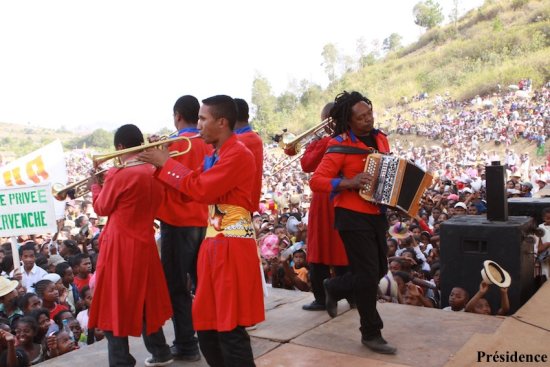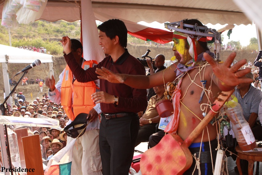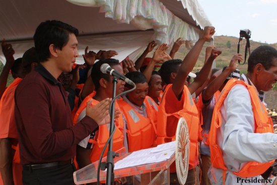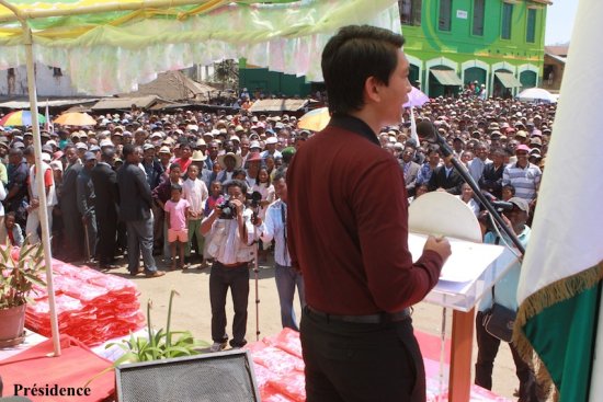 Le président de la Transition, Andry Rajoelina, et sa suite sont arrivés par hélicoptère à Soavinandriana, ce vendredi 12 octobre 2012 vers 9 heures du matin. Une forte délégation étatique, composée essentiellement de membres de gouvernement, de membres du parlement de la Transition, surtout ceux natifs de cette région, avait fait le déplacement pour l’accueillir avec les autorités locales, civiles et militaires.