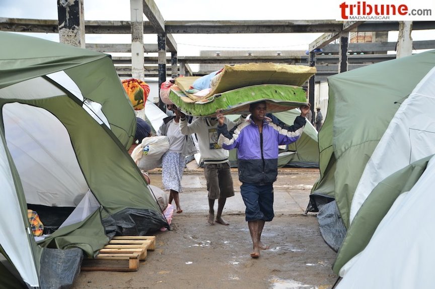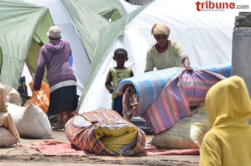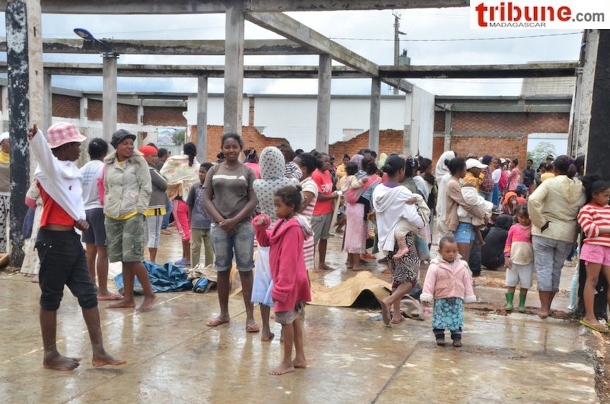 L’Etat a décidé sur les recommandations ou les remarques des bailleurs de fonds et des organismes d’aides, de rassembler les sans abri des suites des inondations et glissements et effondrements de terrain en un seul endroit. La place de l’ancien abattoir sis sur la route à Andohatapenaka a été choisie pour ce faire. Mais nombreuses sont les mères de famille et chefs de ménages qui refusent de rejoindre ce site, assez éloigné de leur habitation, des écoles fréquentées par leurs enfants et de leurs sources de revenus. Beaucoup de ces foyers vivent au jour le jour et ils doutent fort que d’une part « leurs patrons » viennent sur les lieux pour leur apporter du travail, que d’autre part, les aides apportées par l’Etat et les bienfaiteurs ne suffisent pour satisfaire leurs besoins quotidiens. Ils craignent ainsi pour leurs moyens de survie, leurs « petits métiers ». De plus, rapportent des mères de familles, « le PDS leur a fait comprendre que l’Etat ne peut leur promettre le manger quotidien ». Par ailleurs certains parmi ces sinistrés notent que « le président et sa suite sont juste passés ; ils ont regardé le site et ne leur ont pas adressé la parole. Puis ils sont partis ». C’est à certaine presse que ces autorités s’étaient adressées par la suite pour laisser entendre que le site de la route digue serait destiné à devenir un centre d’accueil durable en cas de sinistres pour des sans-abri.