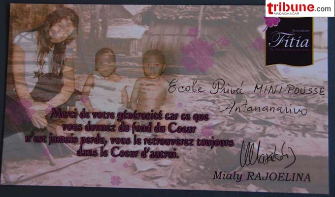 L’association « Fitia » présidée par Mialy Rajoelina a lancé un appel à la générosité de tous, de se donner la main pour la « grande caravane de la solidarité » en vue d’aider la population de Vatovavy Fitovinany frappé récemment par le cyclone « Hubert ».