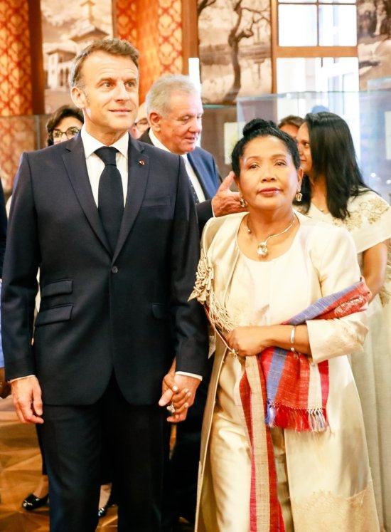 A signaler aussi , la fierté de la Dame ...aux Camélias , main dans la main avec le Président Français , pour confirmer que la soumission envers La Mère Patrie continue , et que la danse du ventre est de mise , au sens propre comme au figuré . Les descendants de Rasanjy sont bien vivants ...