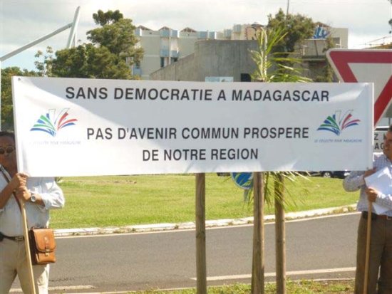 Le Collectif pour Madagascar et l’Association GTT Réunion ont organisé conjointement un rassemblement public le mardi 8 juin à partir de 10 h devant les locaux du Conseil Régional dans le but de faire un appel au retour de la Démocratie à Madagascar, suite aux évènements qui s’y déroulent.