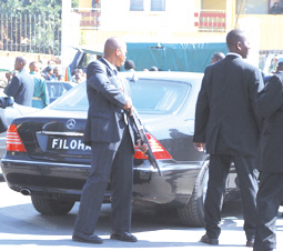 Sous leur tenue civile, costume sombre avec cravate, les éléments de la garde rapprochée du chef de l’Etat Malgache se sont bien équipés pour protéger le locataire d’Ambohitsirohitra. Les agents en tenue de combat ne sont plus les seuls à s’équiper d’armes de guerre dans la protection du Président de la République. Devant cette armada armée jusqu’aux dents destinée à impressionner, le public de Mahamasina s’est souvenu du temps de l’ancien président Ratsiraka qui faisait même survoler les zones sensibles par des hélicoptères MI 8. En tout cas, les journalistes ont été empêchés de suivre le président de la République lors de la revue des troupes. Marc Ravalomanana n’a pas non plus fait de bains de foule, comme au bon vieux temps.