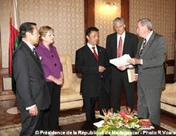 Le Président Ravalomanana s’est félicité de cette volonté de collaborer pour le renforcement du volet santé à Madagascar. Prônant une franche collaboration avec les représentants de l’hôpital des enfants de Vanderbilt, le Chef de l’Etat leur a remis un exemplaire du MAP, renfermant les priorités en matière de santé ainsi que les lignes directrices de la politique de santé à Madagascar.