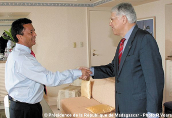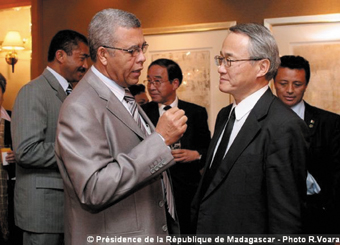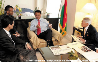 La journée d’hier jeudi 29 mai 2008 s’est terminée par une rencontre entre le Chef de l’Etat, Marc Ravalomanana, et le Ministre japonais de l’Economie, du Commerce et des Investissements, Akira Amari. Ce dernier était accompagné pour l’occasion du Président du Japan External Trade Organization, Yasuo Hayashi et de celui du Japan Oil, Gas, Metals national Corporation.
