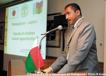 Le Ministre de l’Economie, du Commerce et de l’Industrie, Ivohasina Razafimahefa, a enchaîné en intervenant sur la politique économique de Madagascar, évoquant le climat d’investissement et la législation en vigueur, autant de paramètres qui méritent d’être pris en compte par les opérateurs étrangers désireux de s’implanter à Madagascar. « Le pays vit actuellement des changements importants, tout ceci représente des opportunités à saisir pour les investisseurs japonais », devait-il conclure.