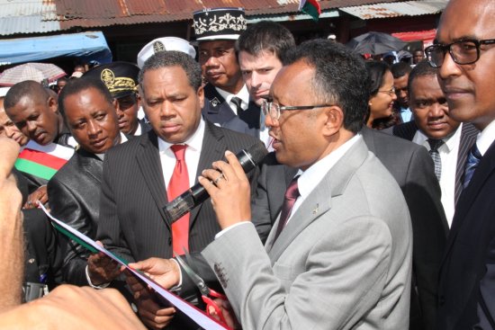 Le président de la République, Hery Rajaonarimampianina, accompagné de plusieurs ministres, a procédé ce vendredi 20 juin 2014 à l’inauguration d’infrastructures routières, portuaires et du Bazar Be du Grand Port.