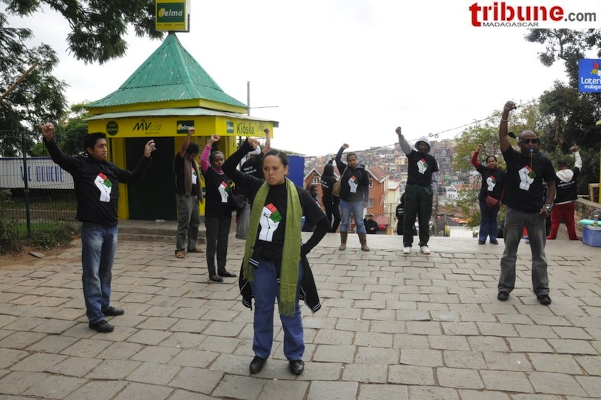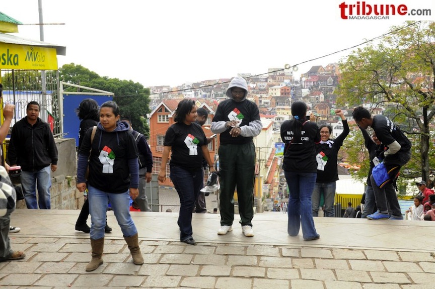 Déjà présent dans les réseaux sociaux, un groupe d’une vingtaine d’individus composé de jeunes et de moins jeunes, hommes et femmes, a décidé de concrétiser leur opinion et leur point de vue sur les affaires nationales ce mercredi 26 juin à Antaninarenina. Il était 11h et ils ont appelé les Malgaches à se réveiller ; rien d’autre à part que ce groupe s’était déjà préparé à l’événement car tous ses membres étaient identifiés par le port de tee-shirt avec inscription « Wake Up Madagascar ». Pour clore leur manifestation, le groupe a chanté l’hymne national.